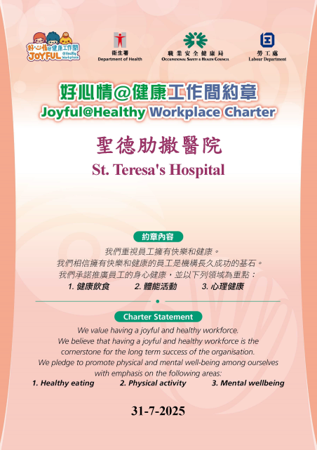 Hospital was granted Joyful@Healthy Workplace Charter in 2025 to recognize its effort to promote mental health friendly workplace.
